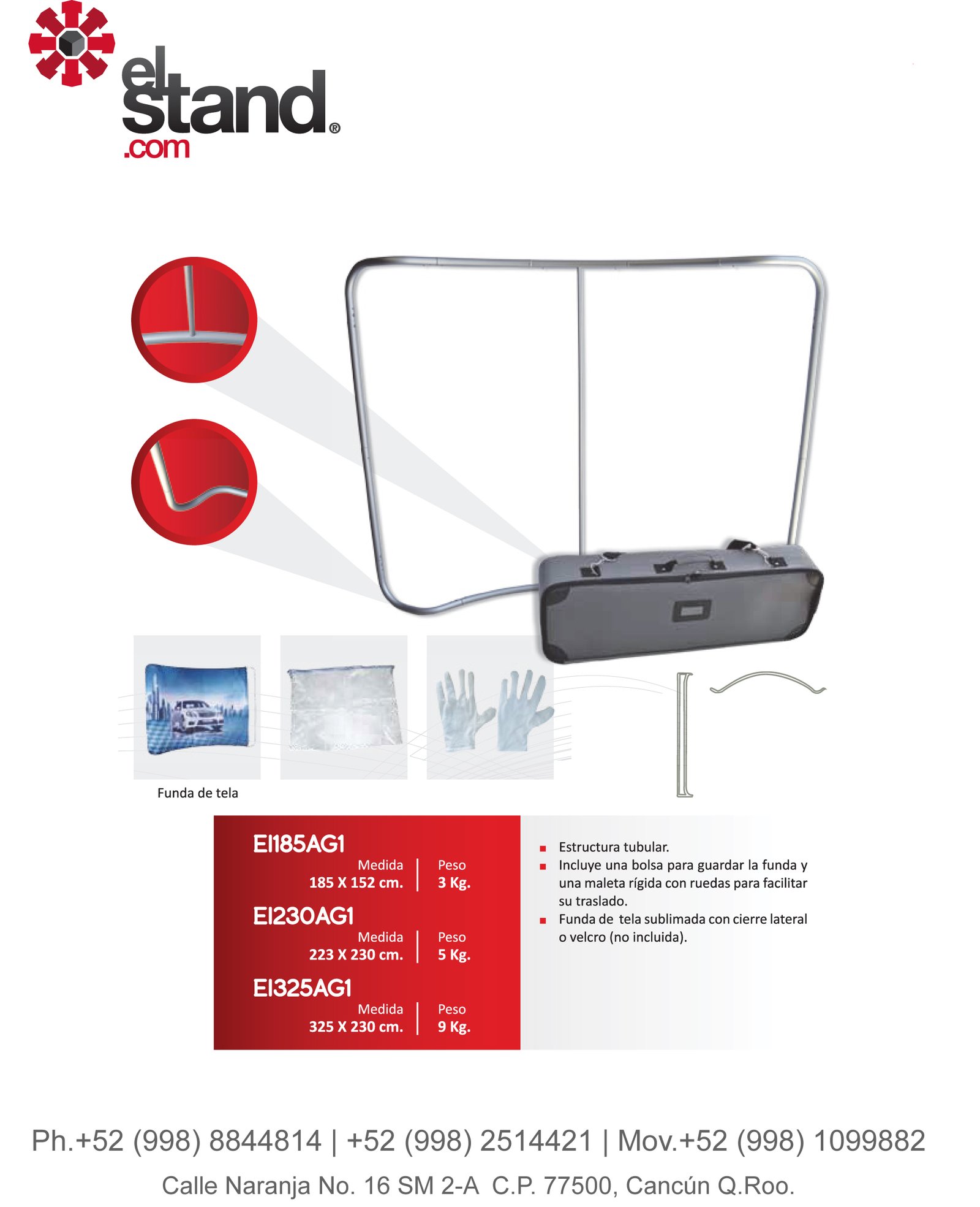 Portátil Estructura Metálica Curva. Excelente precio, contactamos: (998) 8844814, 2514421, mktng@expocongresos.com