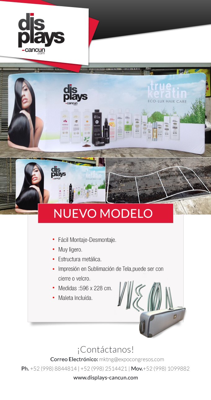 Nuevo Modelo–Portátil. Fácil Montaje-Desmontaje. Muy ligero y se transporta con una maleta la cual esta incluida. Estructura metálica. Impresion en Sublimación de Tela,puede ser con cierre o velcro. Medidas : a) 596 x 228 cm.… Leer más »Nuevo Modelo-Pared curva 6M-Portátil